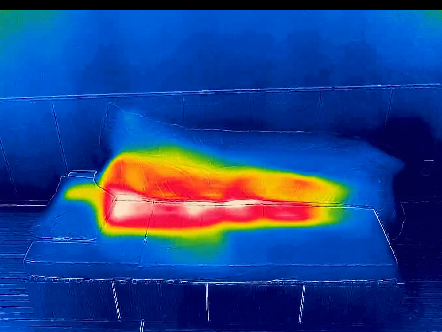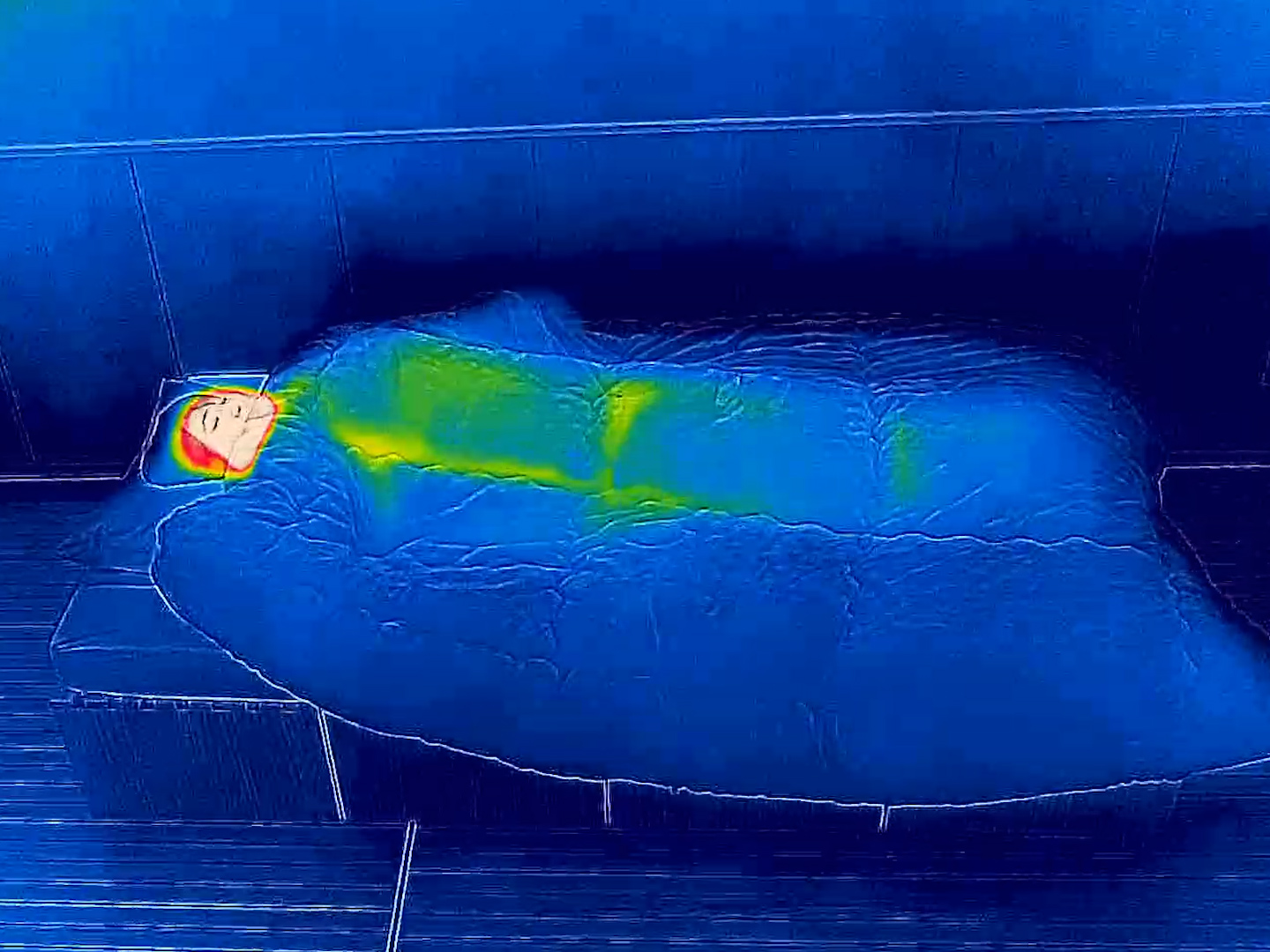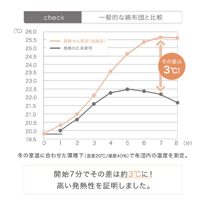 (画像:一般的な綿布団と比較した布団内の温度差)