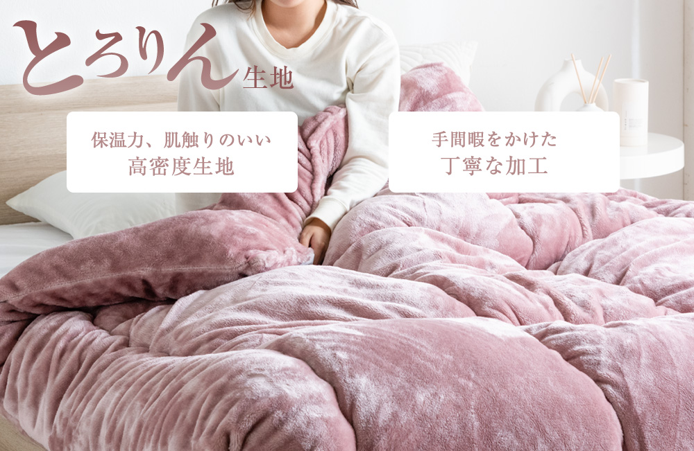 この「とろりん生地」と独自開発の発熱わたを掛け合わせ、寒い冬にぴったりの快適な寝心地を実感いただける掛け布団になっております。◇毎日清潔に保てる抗菌・防臭加工