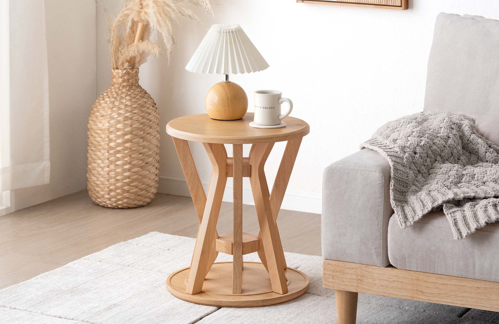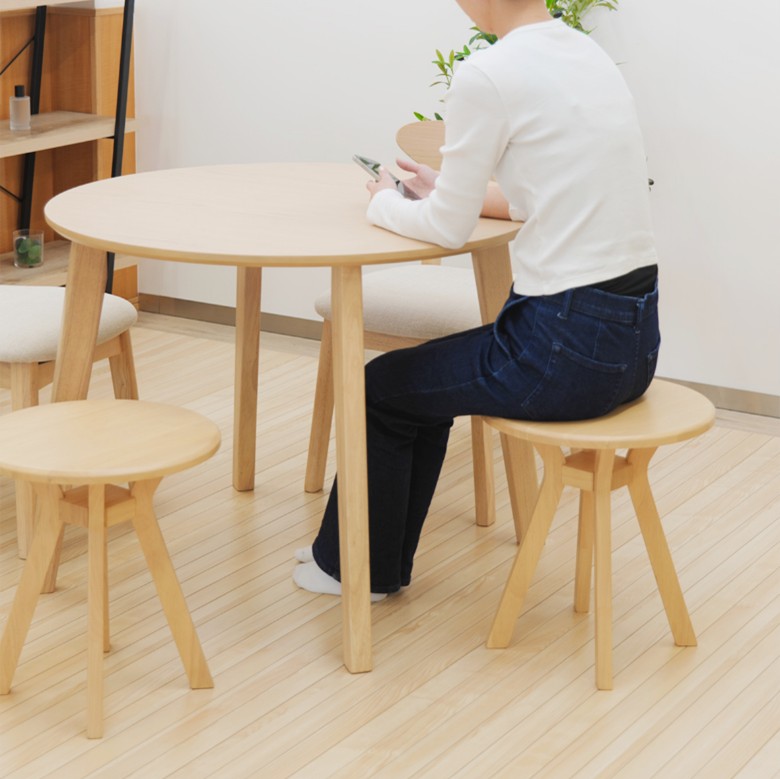 本製品は2脚のスツールで構成されており、来客で椅子が足りない際などに活用いただけます。2脚のスツールを上下で組み合わせることでサイドテーブルとして使用することが可能です。一般的なスツールのように重ねて部屋の隅などに置いておくスペースが必要なく、サイドテーブルとして活用できる実用的な製品となっています。サイドテーブルとして設置する際の脚部のデザイン性をアップし機能性だけでなく、デザイン性にもこだわった製品です。