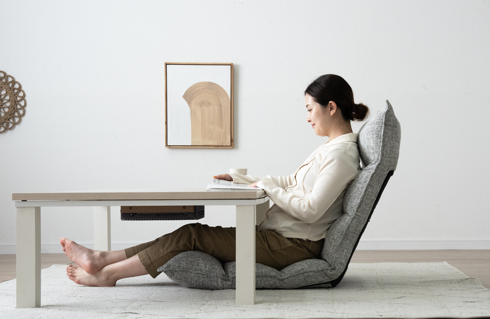 (画像:座椅子と合わせて使用可能)◇遠赤外線で芯からあたたかい、省エネ石英管ヒーター搭載