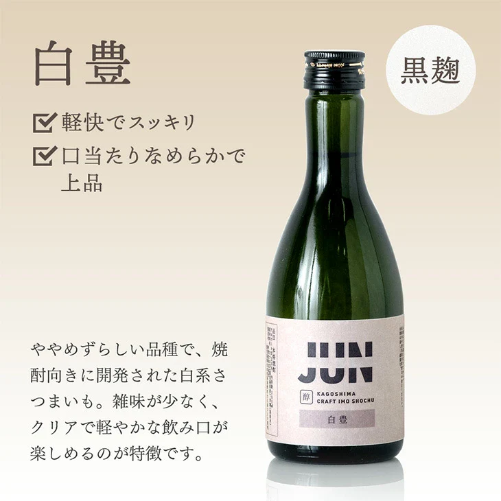 今回の鹿児島・大分・福岡の3県にある蔵元と共同開発した各県の焼酎飲み比べセットをご紹介します。① 鹿児島 芋焼酎「JUN-ICHI」