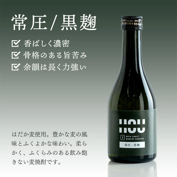 「HOU-ICHI」は、大分麦焼酎の持つ“多彩な表情”を一度に体験できることを目指して開発したセットです。本セットでは、軽快でクリアな香りが特徴の減圧蒸留タイプや、麦本来の香ばしさと厚みを感じられる常圧蒸留タイプに加え、華やかな香りが特徴の香り酵母仕込み、樽熟成による甘いバニラ香と深いコクを楽しめる熟成タイプ、そして旨味とキレのバランスが取れた蔵元独自のブレンドタイプなど、麦焼酎の世界を立体的に理解できるように構成しています。
