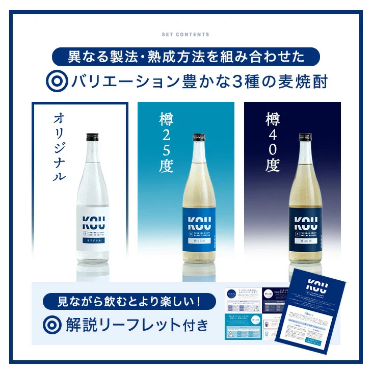 ― 蒸留方法や熟成の違いによって生まれる麦焼酎の幅広い個性を体験できる 300ml × 5本セット