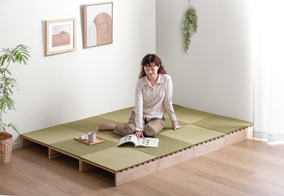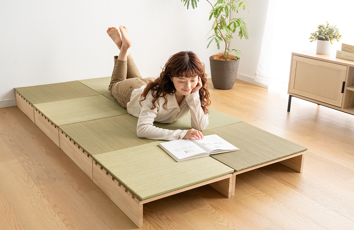 「ローソファ」のような座面をたたんだ状態では、圧迫感を抑えることができるため、お部屋をすっきり見せつつも、あぐらもかける広々とした座面になっているので、ゆったりとしたくつろぎを実現します。テレビを見たり、本を読んだりなど、一人でのリラックスタイムにぴったりです。