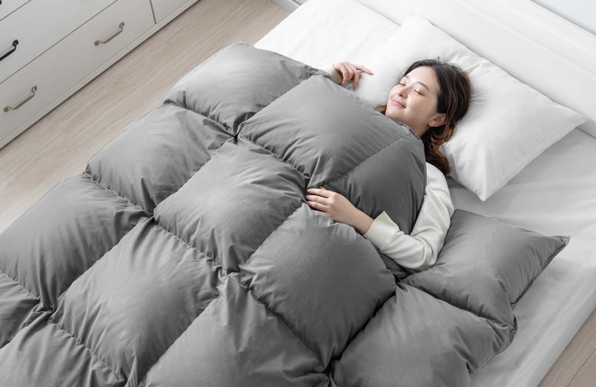 グレードが高いほど、高品質なダウンとされ、ダウンパワー(羽毛1g中の体積)の数値が大きく、より暖かくて軽い羽毛布団となります。