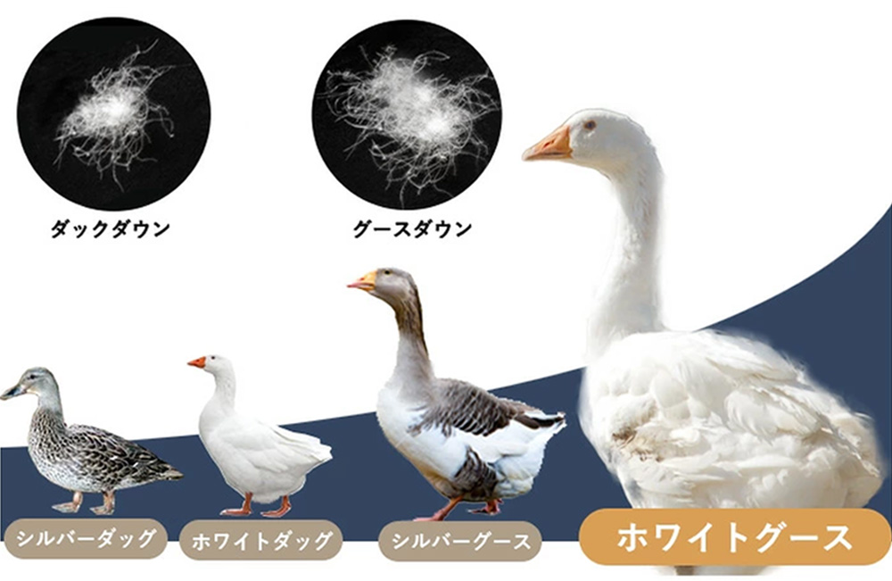 (画像:羽毛布団に使用される水鳥の種類とダウン)