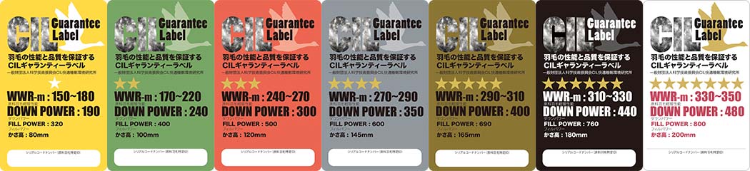 羽毛布団に使用されている羽毛の品質を示す重要な指標として、専門機関が発行した品質保証ラベルがあります。タンスのゲンでは、一般社団法人科学技術振興会の快適睡眠研究所が発行する「CILギャランティーラベル」を採用しており、厳格な基準に基づいて羽毛の品質ランクを定めています。