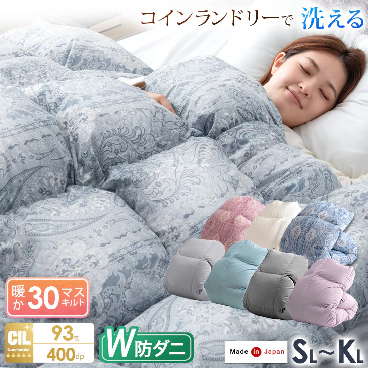 本製品は5つ星のCILゴールドラベルを獲得した、ホワイトダックダウンを93%使用した羽毛布団です。