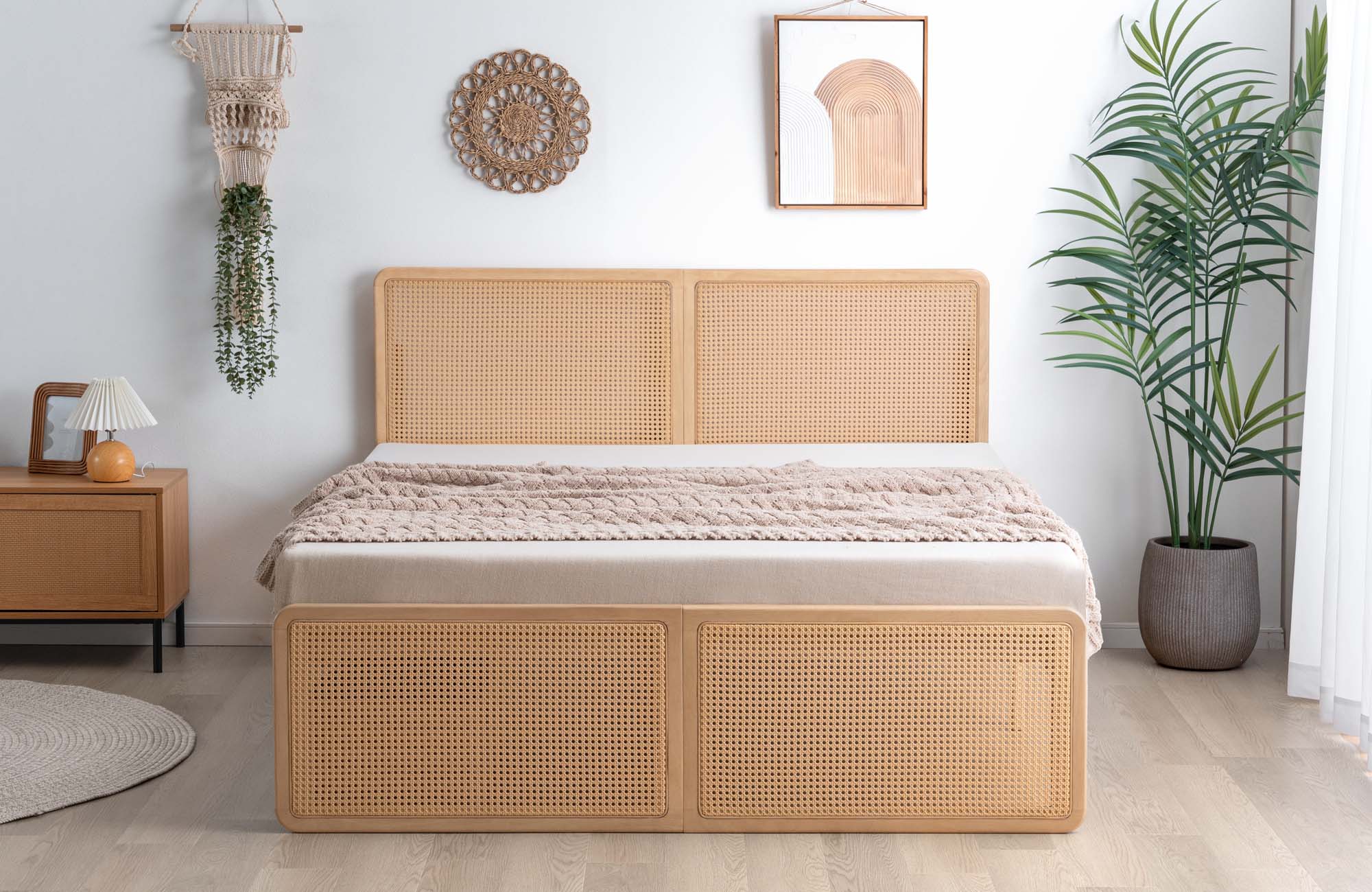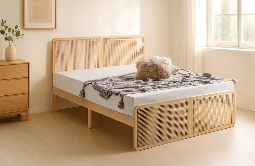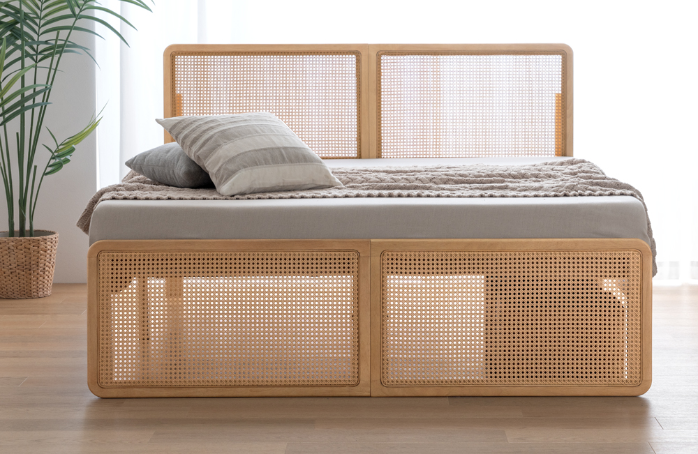 ヘッド&フットボードのラタンが映えるベッドが登場!