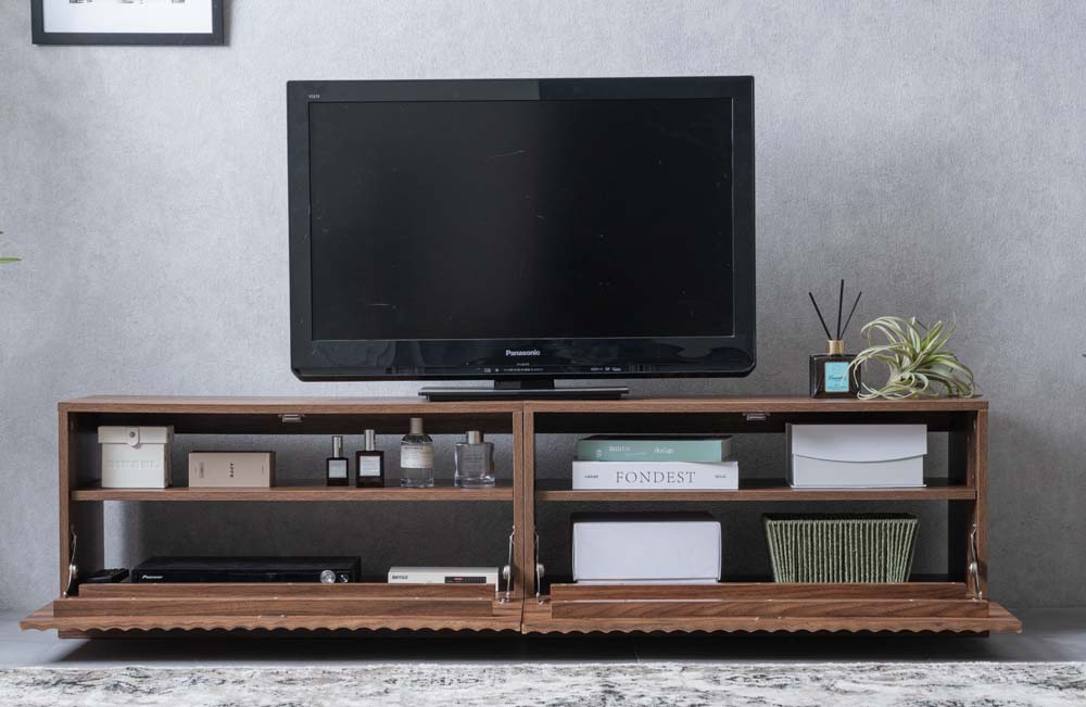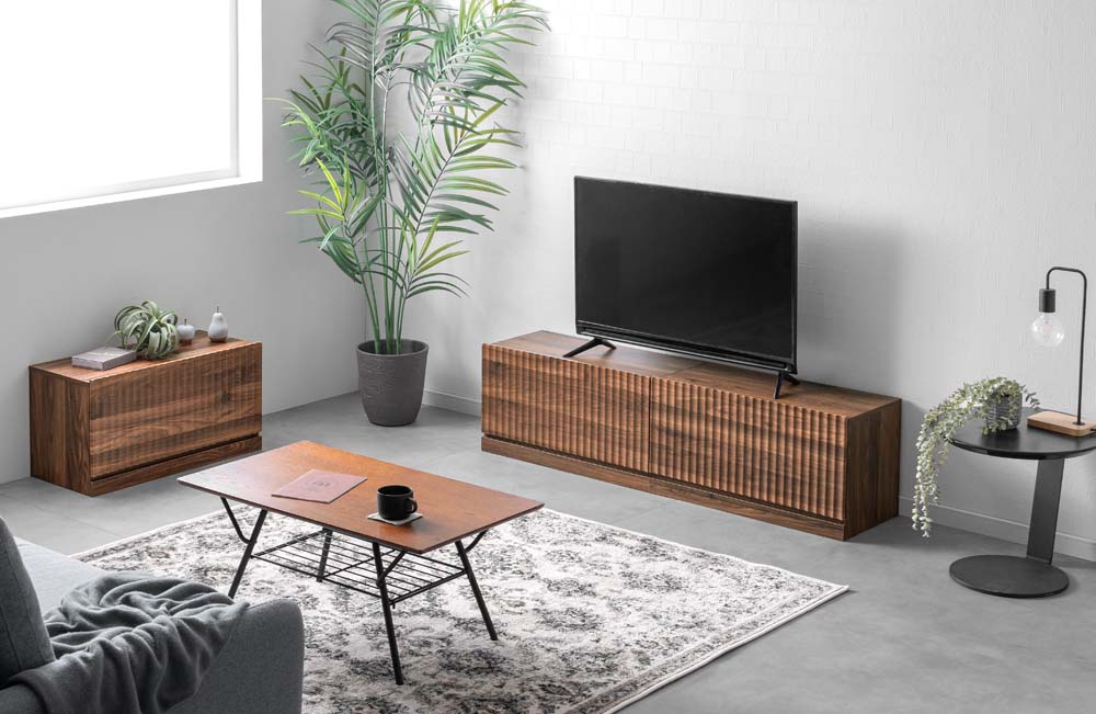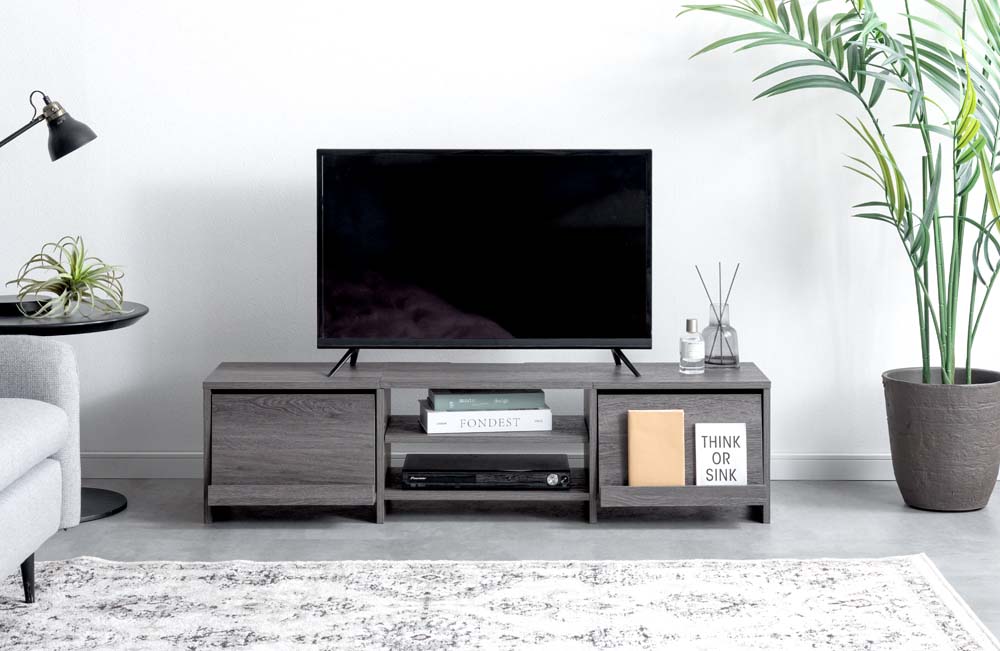 本製品は、「魅せる収納」と「隠す収納」のいいとこ取りできるフラップ扉のテレビ台です。お気に入りのアイテムはおしゃれに飾り、生活感は隠すことが可能。インテリア性と実用性の両方を叶える1台です。