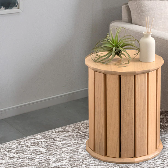 4脚のスツールを上下に組み合わせることでサイドテーブルとしても使用できる「サイドテーブルになるスツール」。