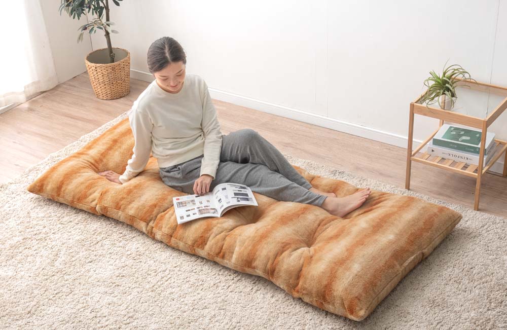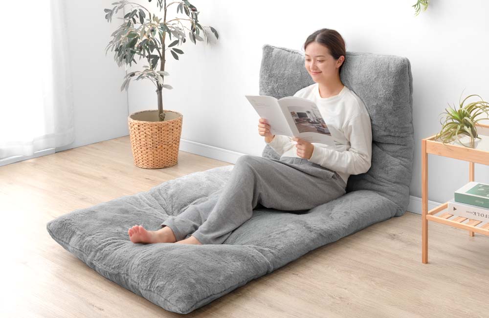 また、2つ折り・3つ折りにして省スペース収納が可能で、長座布団や座椅子代わりとしても活躍します。