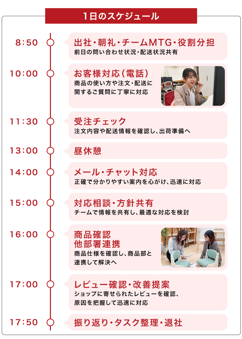 お客様のサポート及び事務全般を通じ「お客様の満足」の向上を行います。