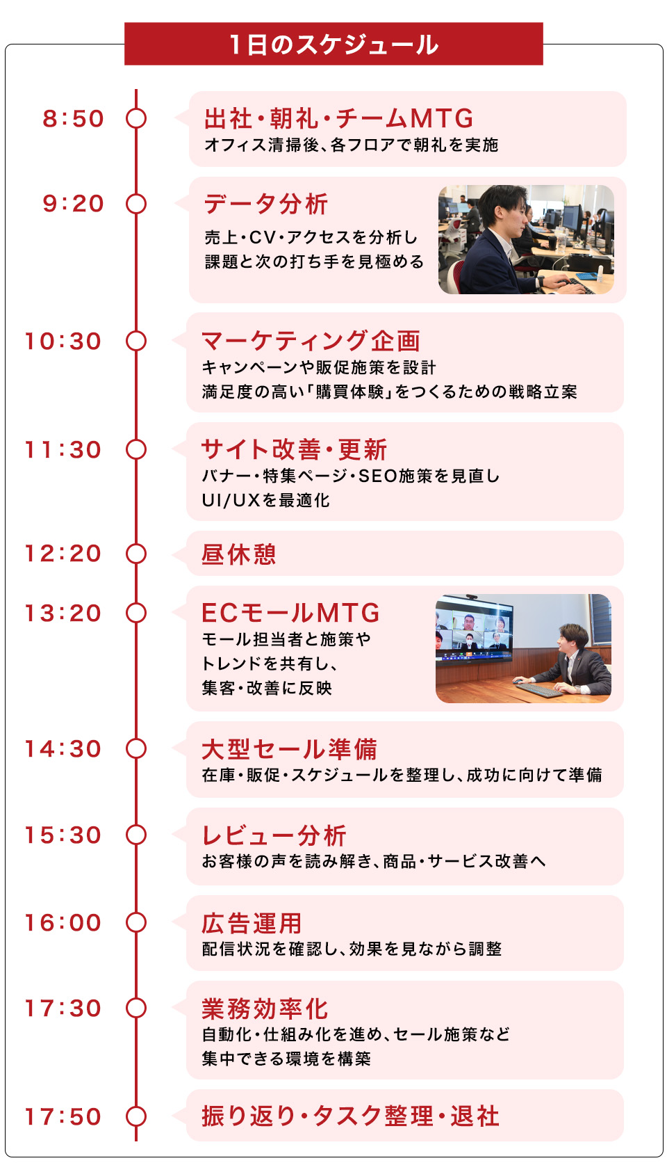 EC店舗を運営する店長、ECマーケターが活躍しています。
