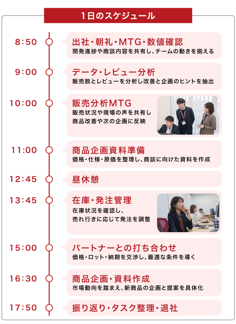 バイヤー・プロダクトデザイナーが、商品企画・品質管理・在庫管理を実施しています。