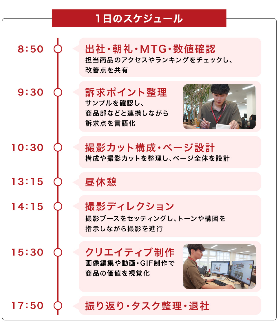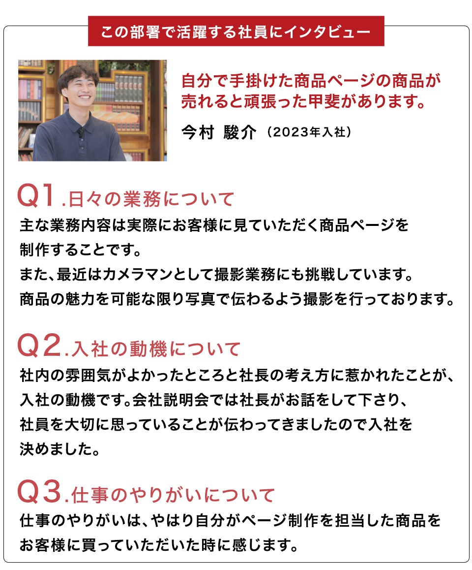 WEBデザイナー・クリエイターが、お客様に商品の魅力を伝えるページ作成を行っています。