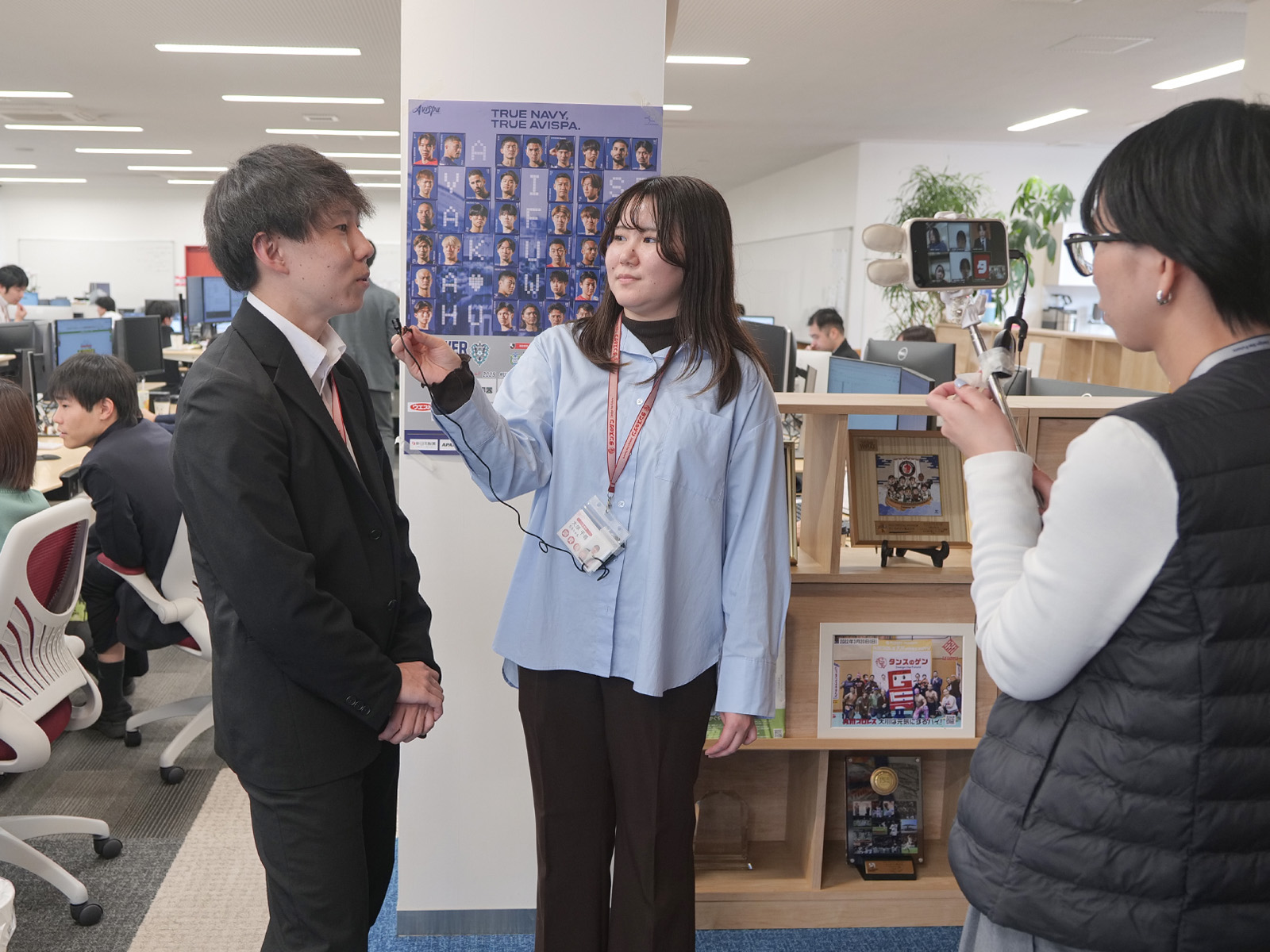 店長(マーケター)、プロダクトデザイナー、WEBデザイナーが活躍する、社内の様子の生配信を行います。現場で働く社員にリアルタイムでの質問もOKです。
